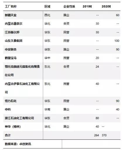 Tabelul 1 Statistica investițiilor și proiectelor de construcție în etilenglicol din 2019 până în 2020