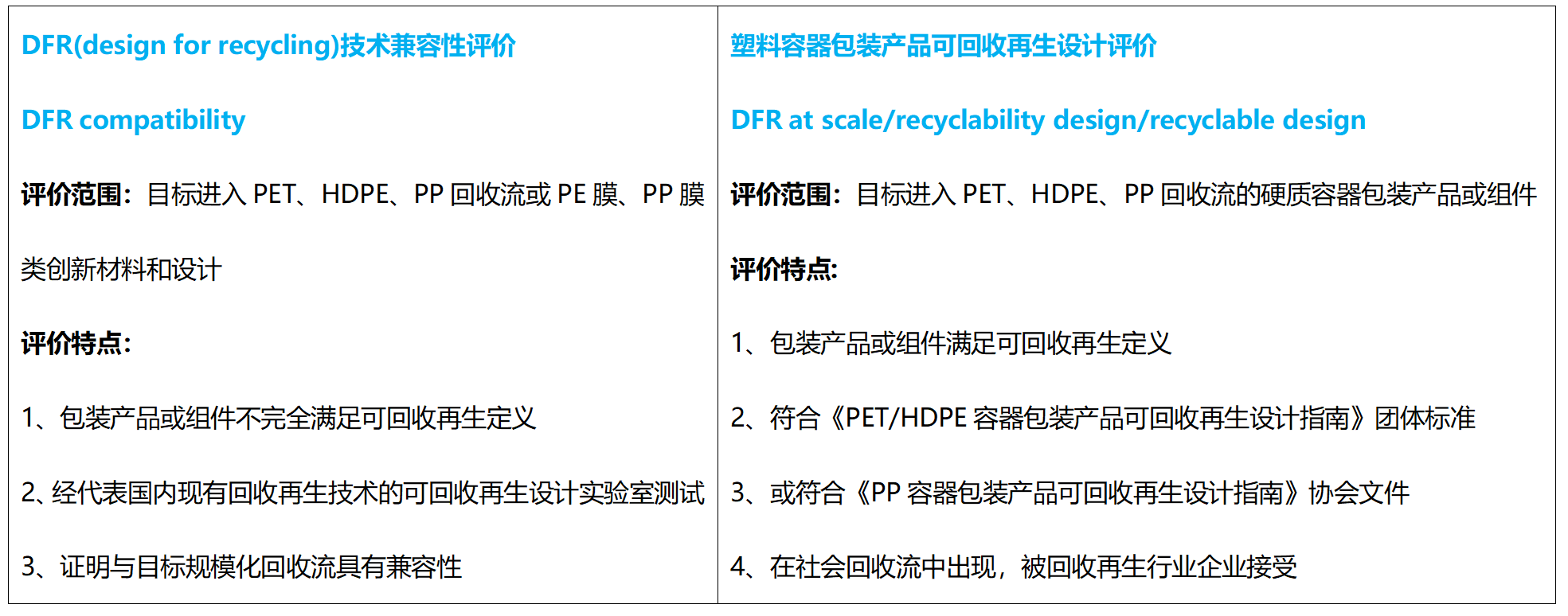 În martie 2022, China Synthetic Resin Association standardele grupului „Ghid de proiectare pentru reciclarea și reciclarea containerelor și produselor de ambalare din polietilenă tereftalat (PET)” și „Ghid de proiectare pentru reciclarea și reciclarea containerelor și produselor de ambalare din polietilenă de înaltă densitate (HDPE)” Lansat oficial; a lansat simultan „Evaluarea designului reciclabil al produselor de ambalare a containerelor din plastic” și a emis primul lot de cutii de design de produs evaluat.