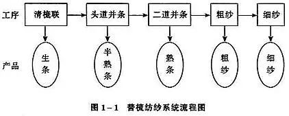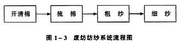 Sistemul de filare a deșeurilor este utilizat pentru a prelucra fire de bumbac dur ieftin, al cărui proces este prezentat în figura de mai jos.