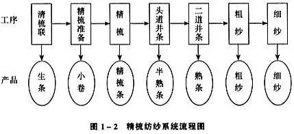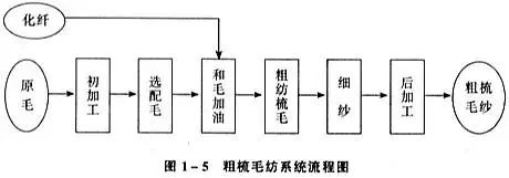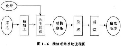 Sistemul de filare a lânii pieptănate are multe procese și procese lungi, care pot fi împărțite în două părți: benzi drepte și filare, iar fluxul sistemului de filare este prezentat în figura de mai jos.