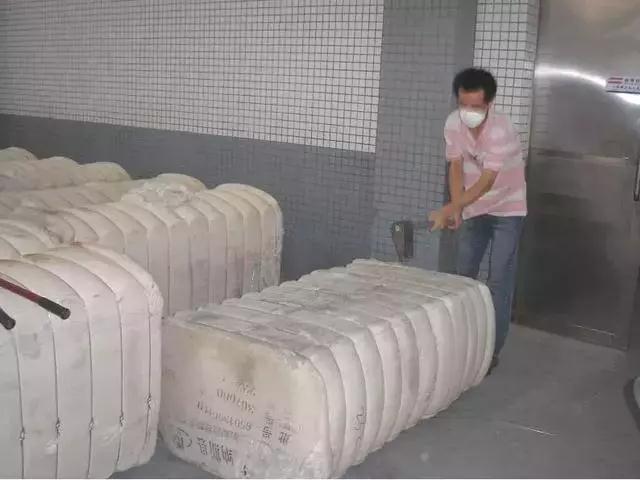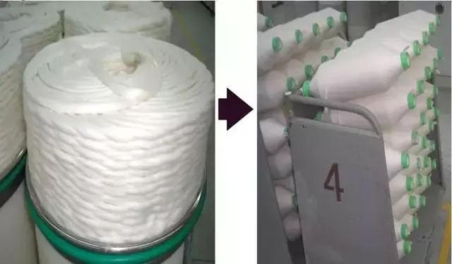 ▲ Rolele de bumbac generate de procesul de curățare sunt alimentate la mașina de cardare