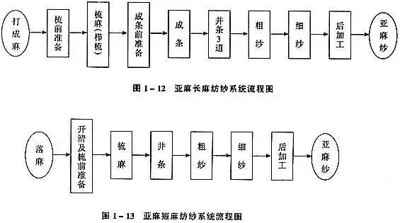 Materia primă de filare a inului este bătută în cânepă, care este prelucrată de sistemul de filare a inului lung de in, iar procesul său de filare este prezentat în Figura 1-12, în care stofa de filare a inului lung este gătită și apoi procesată fin. Cânepa care căde și cânepa din spate a filării lenjeriei lungi intră în sistemul de filare a inului scurt, iar procesul este prezentat în figura de mai jos.